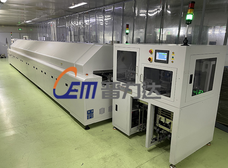 艾華集團湖南益陽總部2022年3月16日向我公司(晉力達)咨詢定制一臺大型20溫區回流焊以及自動上下料機構帶載具校正功能,型號:G-F2040-LF大型環保蝸殼式雙通道熱風結構+導軌+電腦+上料機+下料機+流水線(非標定制);